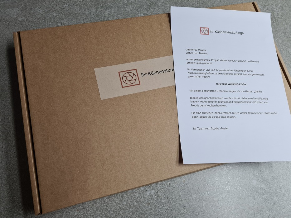 Kalkulieren Sie das Schneidebrett direkt in Ihren Materialaufwand, so zahlt Ihr Kunde das Geschenk quasi selbst.