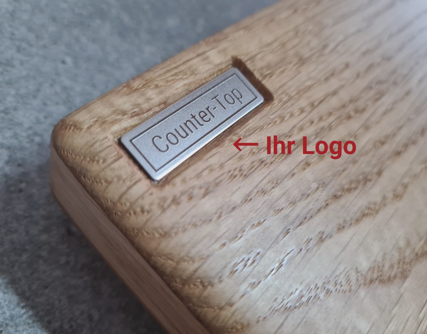 Wir haben das passende und sehr edle Geschenk. Ihr Edelstahllogo wird passgenau ins Schneidebrett eingesetzt.